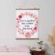 Hermoso tapiz con las palabras "Y así juntos crearon una vida que aman", y tomados de la mano, rodeados por una corona de flores.