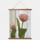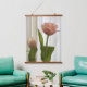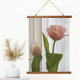 Una tulipa rosa pastel elegante y un capullo de tulipán contra crema suave y blanco se presentan en esta hermosa tapicería floral colgante con marco de madera con parte superior fotográfica.