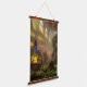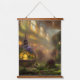 El tapiz surrealista generado por IA incluye una pintura de arte digital de un hermoso atrio sobrepoblado con plantas exuberantes y una mágica casa de hadas en el suelo.