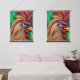 Este gallo tiene una energía poderosa, como si pudiera cobrar vida en cualquier momento. La combinación de la pintura realista con los elementos abstractos crea un mundo cautivador y emocionante que desafía la explicación.
