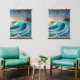 Tapiz Con Marco De Madera El esplendor de una ola azul