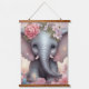 Tapiz Con Marco De Madera Elefante bebé adorable con flores