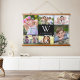 Moderno collage de fotos de tapiz colgante negro con tus fotos favoritas de familia, amigos, nietos, mascotas, recuerdos, etc. Añada su monograma inicial y nombre en tipografía blanca elegante.