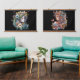 Una pareja fantasía cuentos de hadas mujeres decoradas con hojas y flores sobre un fondo negro