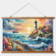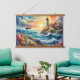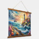 Tapiz Con Marco De Madera Faro jardín floral en el mar