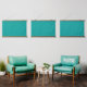 Tapiz Con Marco De Madera Fondo degradado que mezcla el azul con el verde.