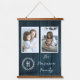 Personalice un regalo único con un Monograma de Fotografía Colgante de Monograma de Familia Rústica Azul. El diseño del tapiz presenta dos colocaciones fotográficas, personalización del monograma y un fondo rústico de madera.