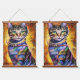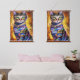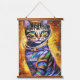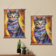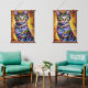 Tapiz Con Marco De Madera Gato de neón futurista