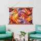 Los vibrantes remolinos de color crean un diseño abstracto dinámico e hipnotizante, con tonos cálidos de naranja, amarillo y rojo que se mezclan con tonos más fríos de verde y violeta. Las formas fluidas y las capas intrincadas de la composición evocan un sentido de movimiento y profundidad.
