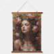 A beautifully printed floral portrait tapestry with a natural wood hanger, designed to bring warmth and peaceful elegance to your bedroom décor.