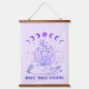 El tapiz de la pared celeste presenta fases de la luna púrpura con la mano encantada sosteniendo un grupo de cristales y el texto "Hacer hoy mágico".