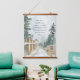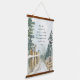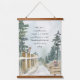 Colgar tapicería con una escena natural de acuarela pacífica que se puede personalizar con su propia redacción o borrar el texto de ejemplo si no se requiere ninguna redacción. El diseño presenta un paseo en el bosque de invierno con una vida de búho y pájaro sentados en los postes de la cerca.
