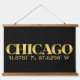 Elegante tapiz de pared presenta las coordenadas del mapa de latitud y longitud de la ciudad de Chicago en fuentes doradas sobre fondo negro