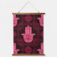 Tapiz Con Marco De Madera Magenta y Black Hamsa buenas fortunas