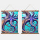 Tapiz Con Marco De Madera Misterioso Octopus Ola Azul Océano Resumen Arte