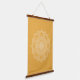 Tapices colgantes de tela moderna con una mandala blanca sobre un fondo amarillo dorado, decoración perfecta para un estudio de yoga o una sala de meditación. Utilice la herramienta de diseño para cambiar el color del fondo y la manala geométrica si lo desea.