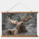 Tapiz Con Marco De Madera Moose Cabina Art Blanco negro