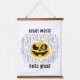 El diseño de "mundo cruel, hola fantasma" está preparado para las celebraciones de Halloween, y está dominado por la calabaza habitual, en la que está la imagen de un ser querido, y encima y debajo hay mensajes ingeniosos que, como la imagen, pueden ser reemplazados por los tuyos.