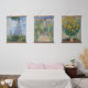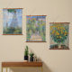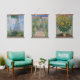 El conjunto de 3 cuadros antiguos y famosos de Claude Monet de los años 1800. Este paquete incluye el arte impreso: una mujer con una sombrilla, el jardín del artista en Vetheuil y flores de alcachofa de Jerusalén. Impresa sobre un tapiz colgante de madera. Licencia CCO, dominio público.