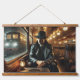 Tapiz Con Marco De Madera Noir Detective en viaje de tren lluvioso