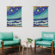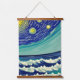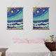 Tapiz Con Marco De Madera Olas azules y blancas: Estrellas lunares
