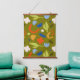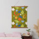 Un alegre patrón floral con flores audaces y abstractas y hojas en tonos cálidos sobre un fondo verde oliva. Perfecto para añadir un toque de encanto y color retro a cualquier espacio.