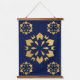 Tapiz Con Marco De Madera Oro nocturno: Patrón geométrico de lujo sobre azul