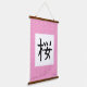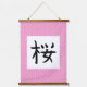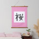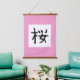 Añada un toque de elegancia al kanji japonés para la floración del cerezo. Este arte mural está hecho para parecerse a un desplazamiento tradicional japonés de la pared.