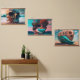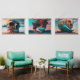 A large skull sits on top of the sand in the ocean, in the style of surreal 3d landscapes, intense color palette, redshift, vibrant illustrations, photo-realistic landscapes, textural explorations