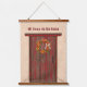 Personalize with your own text on this design of a colorful chile pepper wreath tied with a raffia bow on a rustic red wood door at an old adobe house. The original painting was inspired by the chile ristras and wreaths the artist hung at her home in New Mexico. Ristras are a symbol of welcome said to bring good health and good luck.