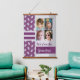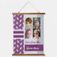 Idea de regalo de Tapiz de Muros con topes de madera. Te queremos, abuela. Reemplace las 4 fotos con las suyas. Diseñado en morado y gris, con un patrón de hoja.