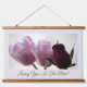 Fotografía de un par de tulipanes rosados y una rosa roja frente a una ventana. La imagen está en un fondo rosa claro. Debajo de las flores, en un texto verde está, "¡Amarte es lo mejor!" Puede cambiar esta frase. Derechos reservados ©Kimberly J Tilley.