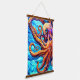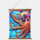 Tapiz Con Marco De Madera Whimsical Octopus Blue Ocean Wave Cubism