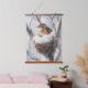 Pretty wren bird in a snowy winter nest in a tree. Nature wall art hanging tapestry. Size is 26x36 inches.
