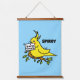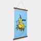 A silly yellow cockatiel drawn in a cartoon style sitting on a tree branch. He holds a sign in his beak that says, "Gimme Treats." It's offered here on a wall hanging to decorate a bird room or any space where you keep your cockatiel. Personalize this wall decor with your bird's name and add a background color instead of the blue shown here. Cockatiel parents know that these birds want treats all day long! This wall hanging makes a great accent to any cockatiel lover's home!