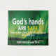 CONFÍA EN EL SEÑOR Tapiz de arte para iglesia cristiana en tonos de verde. La elegante decoración cristiana inspiradora para la iglesia está basada en PROVERBIOS 3:5-6, que comienza 'Confía en el Señor con todo tu corazón'. La cita principal inspiradora dice LAS MANOS DE DIOS SON SEGURAS. La imagen de fondo es de la Aurora Boreal. Hay TEXTO PERSONALIZABLE donde puedes agregar tu nombre, apellido, nombre de la iglesia o nombre de tu organización basada en la fe. Esta vívida decoración cristiana para pared seguramente mejorará las paredes de tu hogar o iglesia, y dará seguridad de la protección y fidelidad de Dios. Elige entre una amplia selección de versículos bíblicos populares en decoraciones cristianas inspiradoras, que también se pueden usar como decoración para pared sobre tus escaleras.