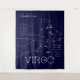 Constelación Zodiacal Virgo o virgen. El color de las estrellas es aproximadamente real. Nombres de estrellas y objetos espaciales. Virgo, Virgen, es la segunda constelación más grande en el cielo. Pertenece a la familia de constelaciones del Zodiaco. El Sol transita por el área a lo largo de la línea de la Eclíptica entre el 23 de agosto y el 22 de septiembre. Hay 35 exoplanetas verificados que orbitan 29 estrellas en Virgo. Tal vez digamos ¡Hola! a sus habitantes cada vez que miremos la constelación. Los griegos asociaron a Virgo con la diosa del trigo y la agricultura, Deméter. A veces Virgo se identifica como la diosa virgen Iustitia, que sostiene las balanzas de la justicia en su mano (la constelación de Libra). Tapiz único, elegante, romántico para cualquiera. Personalizable. Puedes cambiar o eliminar el nombre del template "Estrellas de Elizabeth" y el texto del template "¿Desde qué estrellas hemos caído para encontrarnos aquí? - Friedrich Nietzsche". Puedes transferir este diseño a una variedad de otros productos. No te olvides de usar el botón "Personalizar", o "Editar diseño" (según sea el caso), o el enlace azul "Detalles"--> "Haz clic para personalizar aún más". Te llevará al área de "Herramienta de diseño" donde puedes usar la opción "RELLENAR/AJUSTAR" para AJUSTAR EL DISEÑO AL TAMAÑO Y FORMA del producto