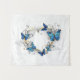 Corazón dorado, con flores morfo realistas azules y blancas. Morfo. Diseño con morfo de mariposas azules.