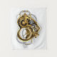 Corazón mecánico, volumétrico, de vapor punk con manómetro de presión, acero y engranajes dorados sobre fondo blanco. Estilo Steampunk.