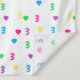 Tercer cumpleaños colorido con corazones en colores arcoiris brillantes y vibrantes: rosa, azul, morado, verde y amarillo.