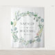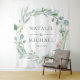 Tapiz personalizado de corona floral de eucalipto en acuarela. Fondo rústico de boda, decoración de recepción de boda floral, pancarta de tela para boda de primavera, fondo de ceremonia de boda, tapiz de fondo de boda, fondo de recepción, cortina de fondo, cabina de fotos de boda. Todo el texto se puede modificar según tus necesidades, ideal también para una despedida de soltera, baby shower o celebración de cumpleaños. **Se pueden encontrar plantillas coordinadas en la colección que se muestra a continuación o pegando esta URL en su navegador: https://www.zazzle.com/collections/eucalyptus_wedding_set-119377605474290034?rf=238919973384052768