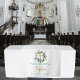 Un hermoso signo de corredor de mesa para fiesta temática de bautizo con corona de hojas de olivo ideal para su bautizo. Personalice este signo único de tapiz de bautizo y cree una hermosa decoración de mesa para su celebración de bautizo o fiesta de evento religioso. Este tapiz para mesa de buffet de bautizo familiar o regalo es versátil ya que se puede utilizar en su mesa de comedor, pancarta colgante, en mesa de snacks o bebidas, etc.