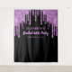 Tela personalizada elegante y divertida para cabina de fotos para tu despedida de soltera con purpurina morada falsa que gotea desde las esquinas sobre un fondo negro y "Despedida de Soltera" en letra cursiva morada. Puedes personalizar aún más con tu nombre y fecha de la fiesta.