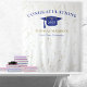 ¡Fondo de celebración de graduación moderno para oportunidades de foto! Brillo en la parte superior e inferior, serpentinas doradas desde el borde superior, gorra de graduación y letras en azul, plantilla de nombre en dorado. Clase de en letras de brillo dorado con plantilla de año en blanco. Agrega año, nombre y nombre de la escuela.