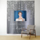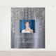 Un tapiz para una fiesta de cumpleaños número 21 (o cualquier edad) femenina y glamorosa. Un fondo con apariencia de plata falsa con gotas de purpurina plateadas elegantes y con aspecto de pintura que gotea. Personalice y agregue su propia foto de alta calidad de la cumpleañera. El texto: el nombre está escrito en blanco con un estilo de letra manuscrita moderna con florituras. Para mantener las florituras, simplemente elimine el nombre de muestra, deje los espacios o emojis delante y detrás del nombre. Plantillas para un nombre, edad 21 y una fecha. Se puede utilizar como decoración de pared para la fiesta o como fondo para una cabina de fotos.