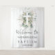 Tapiz Cruz de follaje verde Bautizo de bebé