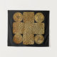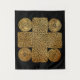 Una cruz céltica compleja del knotwork con espirales y nudos eternos de la trinidad adorna un pergamino antiguo
