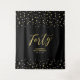 Esta moderna tapicería es perfecta para una fiesta de cumpleaños número 40 con un tema de color negro y dorado chic. Tus invitados disfrutarán tomando una foto con este telón de fondo sofisticado y recordarán tu día especial. El diseño presenta tipografía dorada "Forty" y un fondo de confeti hexagonal. Puedes personalizar el nombre, evento y fecha en la parte inferior de la tapicería. Hay más invitaciones y suministros para fiestas disponibles en mi tienda BaraBomDesign. ¡Gracias!