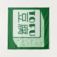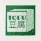 Ilustracion de un cubo de tofu dibujado en un color verde claro. El texto japonés del tofu dice tofu.