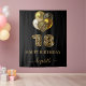 Un tapiz para una fiesta de cumpleaños número 18 femenina y glamurosa. Un fondo negro, decorado con globos. Con el texto: Feliz Cumpleaños. Personaliza y agrega un nombre. El nombre está escrito en rosa oscuro dorado con un estilo de letra manuscrita moderna con florituras. El número 18 está escrito con una fuente de globo de moda, estampado de leopardo. Para mantener las florituras, solo elimina el nombre de muestra, deja los espacios o emojis delante y detrás del nombre. Se puede utilizar como pancarta de bienvenida, decoración de pared para la fiesta o como fondo para cabina de fotos.